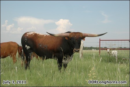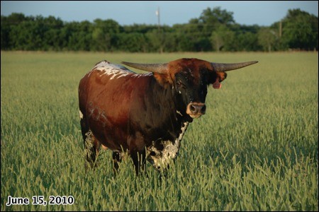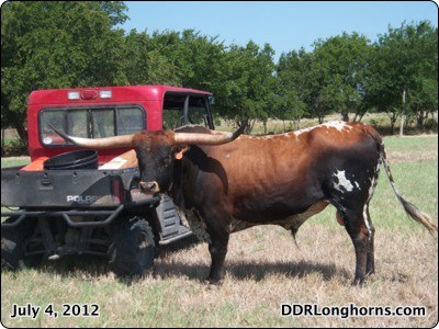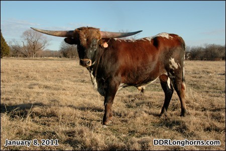 Dam is a HSC winner (FL Rio Maxine) and his sire is DH Red Ranger. He has won 3 bronzes himself. He has color, conformation and serious horn coming on. Check out his beautiful offspring. Semen is available for just $25/straw.