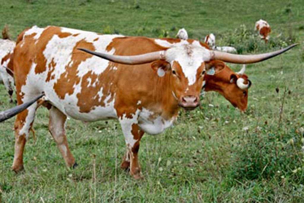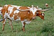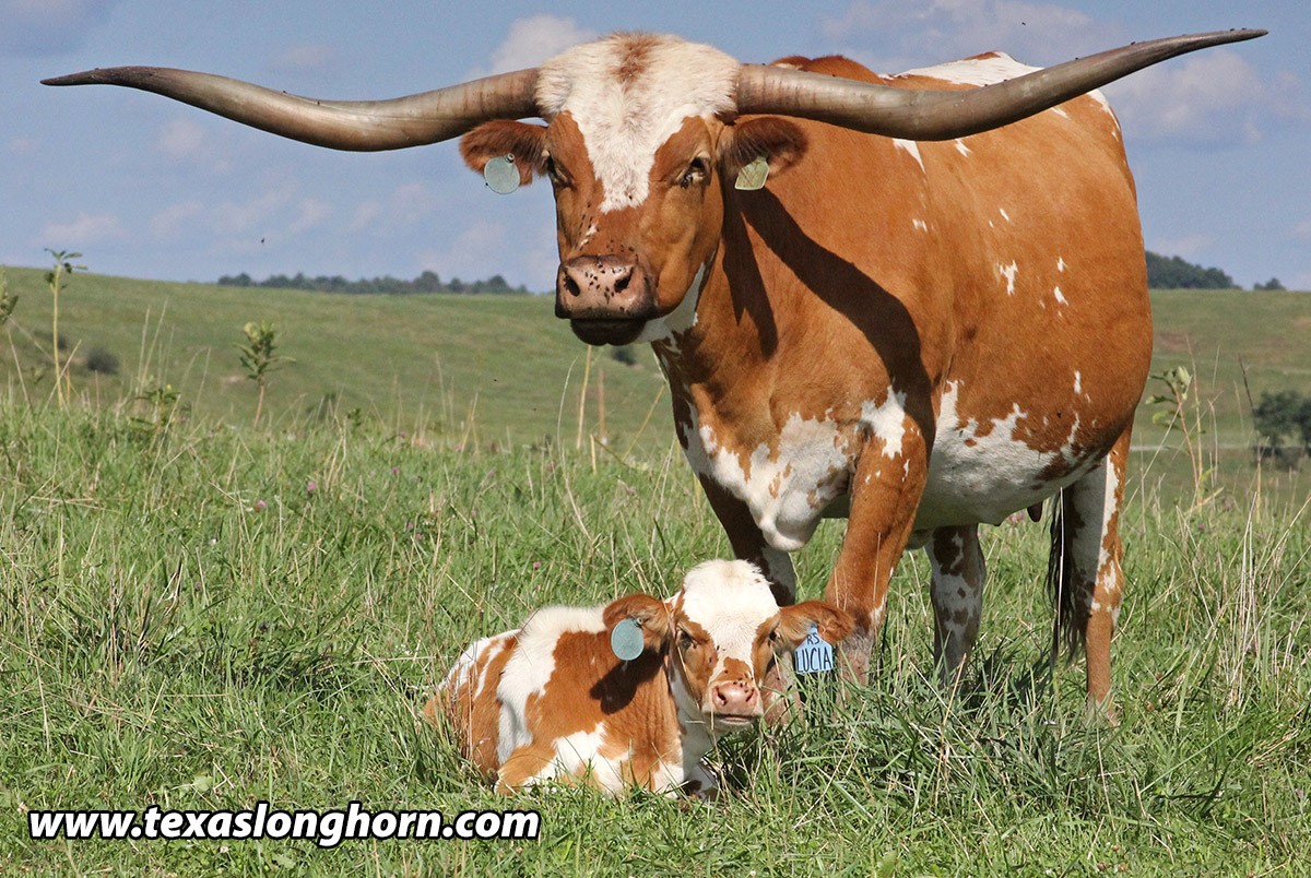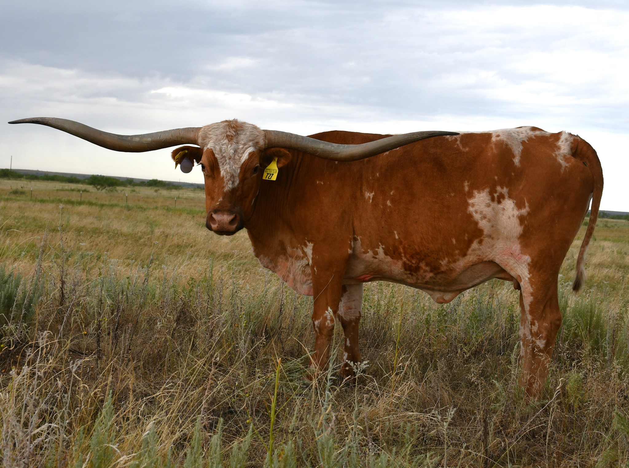 Lucia is a beautiful orange and white cow with a flat twisting horn set. She is a daughter of Tempter and knows how to raise a fat calf.